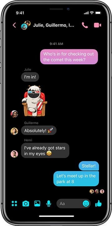 Một điều mà facebook rành riêng cho những người đang sử dụng iOS đó chính là chế độ nền tối trên Messenger. Chế độ này cho phép máy tiết kiệm pin, đồng thời cũng giúp giảm tác hại của ánh