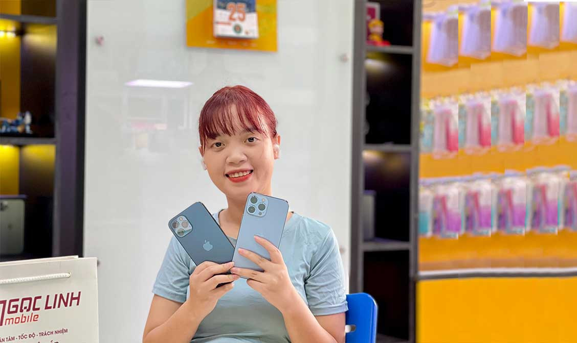 Cuối cùng, chiếc iPhone13 ProMax đầu tiên khu vực Long Biên. Đã cập bến Ngọc Linh Mobile chỉ sau 1 ngày Apple mở bán. Đây là chiếc iPhone 13 Pro Max, màu xanh Sierra. iPhone13 ProMax đầu tiên tại khu vực