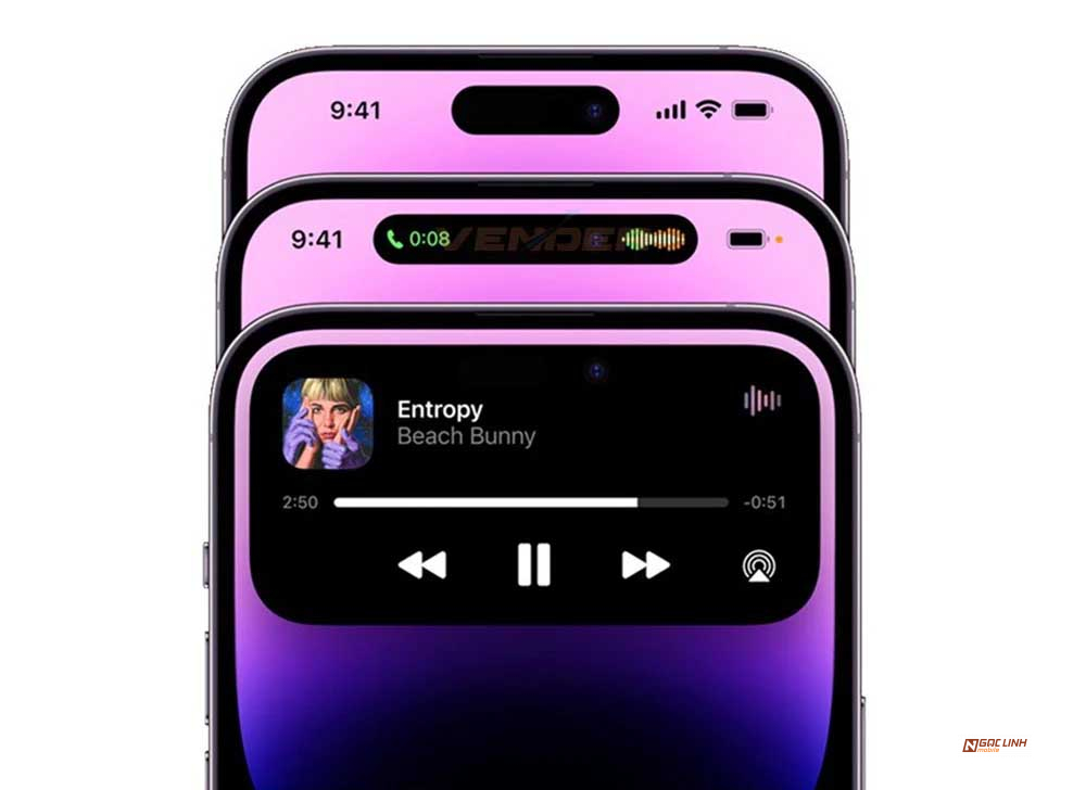 Dynamic Island chỉ xuất hiện trên iPhone 14 Pro và 14 Pro Max. Ở chế độ bình thường. Phần này có dạng viên thuốc chứa camera trước và cảm biến. Giống như nhiều smartphone Android. Tuy nhiên, Apple khéo léo biến khu vực này thành một màn hình phụ. Có thể thay đổi kích cỡ và hiển thị nhiều loại thông báo. Dưới dạng bong bóng mà không gây gián đoạn.