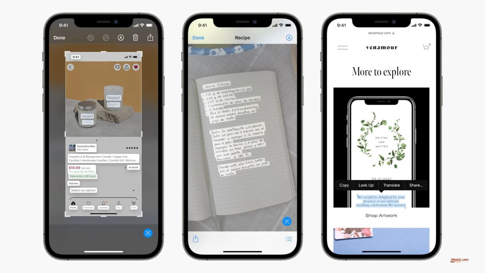 Live Text cho phép người dùng sử dụng camera để quét các đoạn văn bản trên hình ảnh. Đồng thời nếu bạn chạm vào, các nội dung trên văn bản đó sẽ tự động được sao chép. Sau đó gợi ý nếu như đó là những địa danh có trên bản đồ. Ngoài ra, Live Text có thể nhận diện được hình ảnh và đưa ra những gợi ý liên quan.