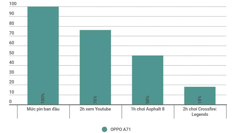 A71 được trang bị chip xử lý 8 nhân MT6750 của MediaTek, tốc độ 1,5 GHz, RAM 3 GB và bộ nhớ trong 16 GB có thể mở rộng bằng thẻ nhớ. Cấu hình khá tốt so với mức giá dưới 5 triệu đồng hiện nay. Máy có thể chạy các game nặng như Alphast 8 ở mức thiết lập cơ bản mượt mà. Máy cũng thể hiện khả năng đa nhiệm tốt khi dung lượng RAM trống luôn ở mức trên dưới 1 GB, đảm bảo thời gian hoạt động dài mà không bị giật lag.
