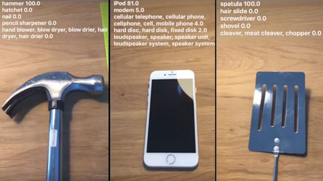 Nó nhận mặt được người anh em cùng họ hàng nhà Apple với nó, tuy nhiên chỉ đoán rằng 81% cái điện thoại này là một cái iPod, còn lại là nó đoán chung chung đây là một cái điện thoại, một cái modem, v.v… Tuy nhiên, nó hoàn toàn đoán đúng cái bàn xẻng lật thịt, khá chắc chắn cái cốc là … một loại cốc, một đồ vật gì đó để đựng nước.