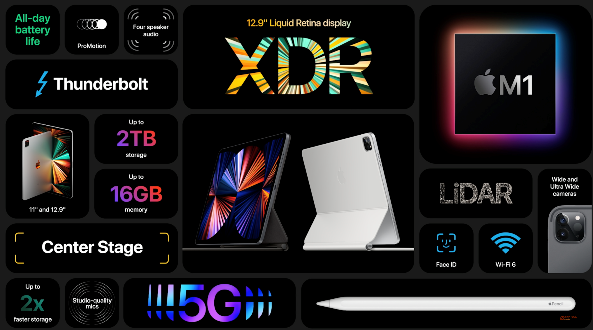 Ngoài ra, model 12.9 inch của iPad Pro 2021 còn sở hữu màn hình Mini-LED thế hệ mới. Đem tới cho người dùng những trải nghiệm giải trí đa phương tiện chất lượng nhất.